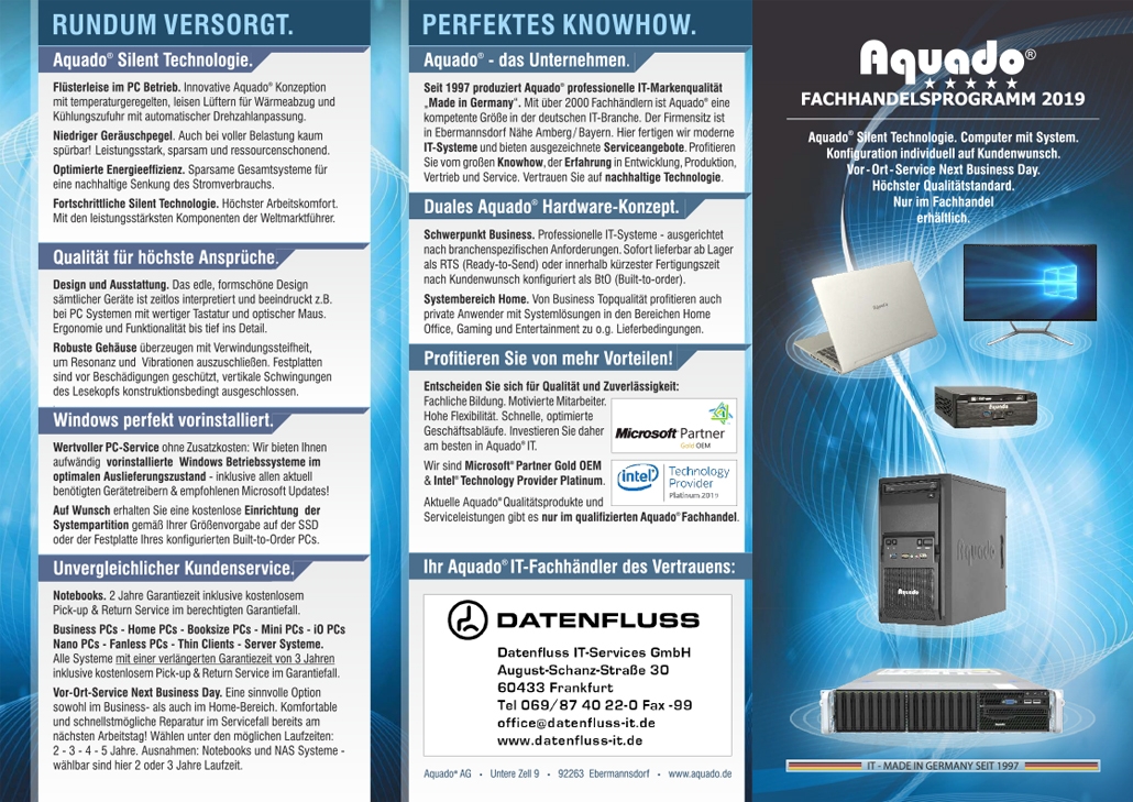 Seit der Gründung 1997 ist die Marke Aquado zu den 10 meistverkauften PC-Marken im deutschen IT-Fachhandel aufgestiegen. Die Gründe für den Erfolg liegen in der Fokussierung auf Kundenzufriedenheit, Fertigung in Deutschland unter Verwendung geprüfter Komponenten sowie innovativer Produkte.